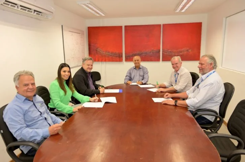Carlos Alberto recebeu para assinatura do Aditivo o presidente da Way 306, Paulo Nunes Lopes e o Gerente de Operações e Conservação, Marcelo Ceccarelli Barbosa. Também participaram o diretor de Rodovias da AGEMS, Matias Gonsales Soares; a diretora de Inovação e Relações Institucionais, Rejane Monteiro; e o coordenador da Câmara Técnica de Rodovias, Edson Delgado.