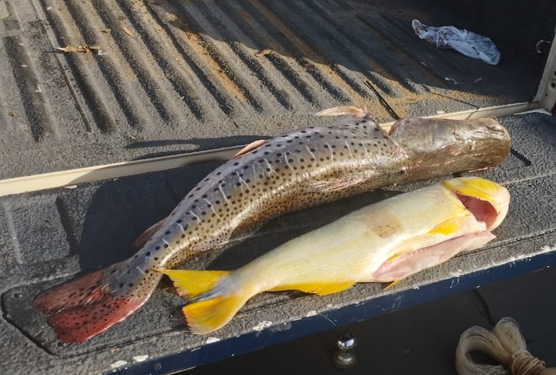 Ao chegarem ao local, os policiais avistaram diversas redes e tarrafas estendidas na varanda de uma residência localizada às margens do rio, equipamentos proibidos para a pesca. Em contato com o proprietário, ele confessou que o material era de sua propriedade e que havia capturado dois peixes: um pintado de 8 kg e um dourado de 5 kg. Vale lembrar que a pesca do dourado é proibida no Estado de Mato Grosso do Sul, conforme a legislação vigente.