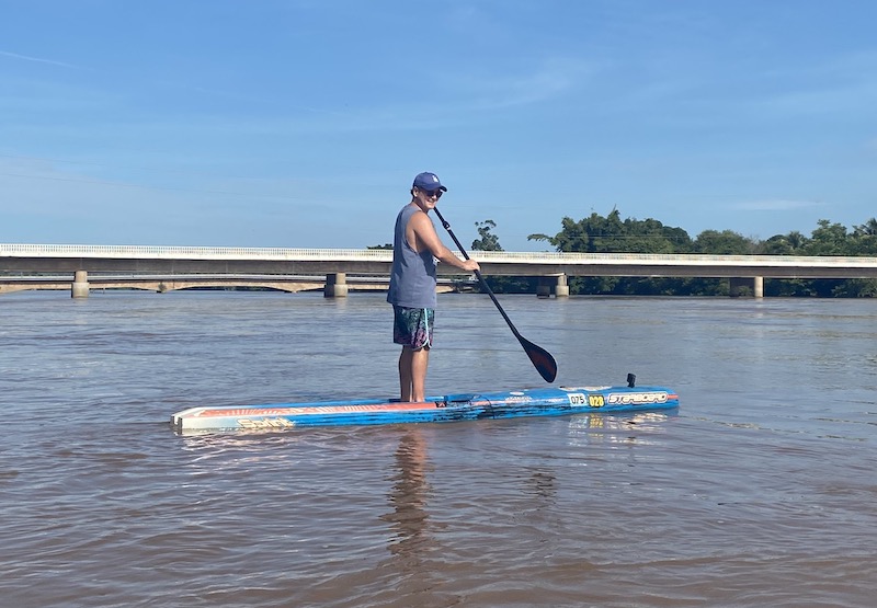 Já no sábado, Bitto Pereira aproveitou o tempo bom e as condições dos rios Coxim e Taquari para praticar seu esporte predileto: o stand up paddle, ou SUP como hoje é chamado carinhosamente pela maioria dos praticantes.