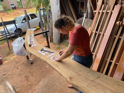 Literalmente pondo as mãos na massa: participando da sinalização turística dos atrativos e fornecendo frutas para hidratar e alimentar animais silvestres atingidos por incêndios florestais. Fotos: Arquivo pessoal