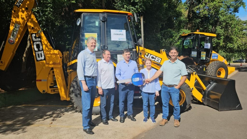 A Prefeitura de Camapuã recebeu uma nova retroescavadeira, 0 km, avaliada em R$ 329 mil, para reforçar os trabalhos de infraestrutura rural do município. A entrega foi realizada com apoio da senadora Tereza Cristina, por meio de articulação com o Ministério da Agricultura e Pecuária (MAPA), o Governo do Estado de Mato Grosso do Sul e a Secretaria de Estado de Meio Ambiente, Desenvolvimento, Ciência, Tecnologia e Inovação (Semadesc).