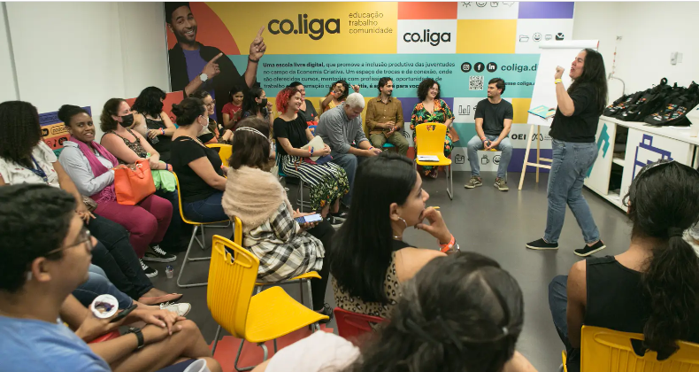 A co.liga, escola digital da Fundação Roberto Marinho (FRM) e da Organização dos Estados Ibero-americanos (OEI), em parceria com a CCR MSVia e o Instituto CCR, oferece mais de 40 cursos gratuitos em diversas áreas, incluindo artes visuais, gastronomia, design e tecnologia. Essa iniciativa visa promover a inclusão produtiva e educacional de 100 mil jovens em situação de vulnerabilidade social até o primeiro semestre de 2025, fomentando emprego e renda por meio da economia criativa.