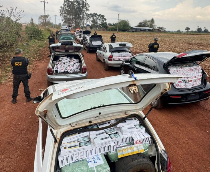Policiais do Departamento de Operações de Fronteira (DOF) apreenderam 17 veículos carregados com materiais de contrabando e descaminho nesta segunda-feira (6), no Assentamento Itamarati, em Ponta Porã. A operação resultou na prisão de 14 pessoas, 12 homens e duas mulheres.