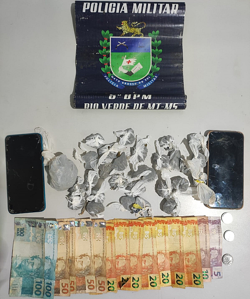 A Polícia Militar prendeu em flagrante dois jovens de 19 anos por tráfico de drogas em Rio Verde. A prisão ocorreu durante um patrulhamento de rotina na Rua Esquerda, na região central da cidade. Os policiais notaram que um dos suspeitos tentou se desfazer de um objeto, enquanto o outro escondia algo nas roupas ao perceber a aproximação da guarnição.