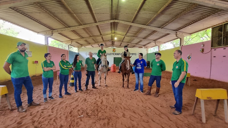 Junto dos educadores físicos, profissionais de áreas como psicologia, fisioterapia, fonoaudiologia, assistência social e pedagogia incorporam assertivamente o quadro de colaboradores do CEQUO de Campo Grande. Frisando os benefícios do trabalho realizado pela equipe, o tenente Lorensetti finaliza expressando que a prática da Equoterapia demonstra resultados rápidos e efetivos. “Um praticante atendido em um consultório de fisioterapia fica, em média, um ano para ganhar controle de tronco, por exemplo, enquanto aqui, em cerca de quatro sessões, o aluno consegue atingir uma reação perfeita de endireitamento pois o cavalo vai exigir isso de forma natural. Aliás, a prática com o animal é prazerosa e dinamiza o processo de tratamento”.
