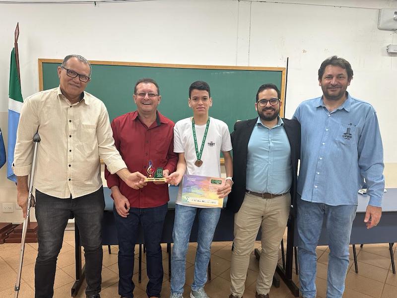 O estudante Raiknny Vicente Belchior, de Alcinópolis, recebeu medalha de bronze da segunda etapa da Olimpíada Brasileira de Matemática das Escolas Públicas (OBMEP), no Campus da Universidade Federal de MS - Chapadão do Sul.