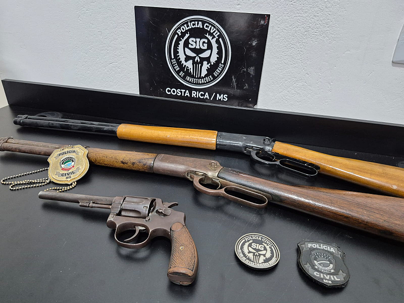 A Polícia Civil apreendeu três armas de fogo em Costa Rica nesta quarta-feira (9) durante investigação de acidente de trânsito. O caso começou com uma colisão entre uma Toyota Hilux e um Honda Civic no último dia 7 de julho.