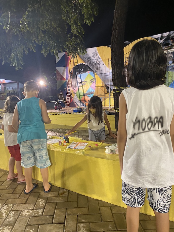 Famílias, ao final da tarde, e apreciadores de artes, passavam a acompanhar o desenvolvimento da obra. Artistas locais, em seu tempo livre, iam até lá observar e aprender novas técnicas. A um só tempo, começavam a chegar moradores de outras cidades, entusiastas da arte de Kobra, e até de Campo Grande, para apreciar a execução do mural e tentar tirar uma foto com ele.