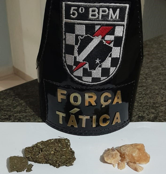 Durante abordagens de rotina, os policiais encontraram com o suspeito porções de maconha e pasta base de cocaína. O homem confessou que pretendia vender os entorpecentes para uma pessoa residente em uma fazenda na região.