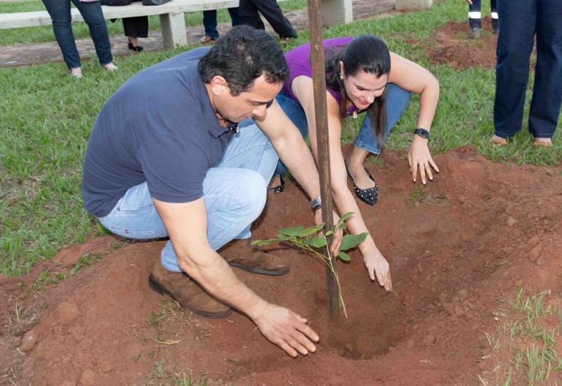 O prefeito Rodrigo e a primeira-dama Naiza fizeram o primeiro plantio em frente ao Paço Municipal. O deputado Junior Mochi também participou da ação, plantando uma muda voltada para a Avenida Iguatemi.