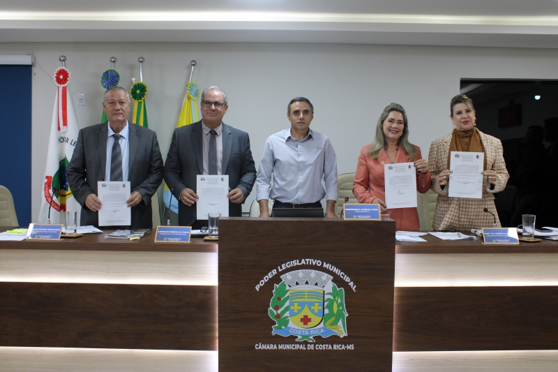 Na segunda-feira (22) ocorreu no Plenário Simino Jorge de Oliveira a cerimônia de posse da nova Mesa Diretora da Câmara Municipal de Costa Rica, marcando o início dos trabalhos legislativos do ano. O prefeito em exercício, Roni Cota, esteve presente e proferiu um discurso destacando as perspectivas para o ano, bem como parabenizando a recém-eleita presidente da Casa, vereadora Rosângela Marçal Paes.