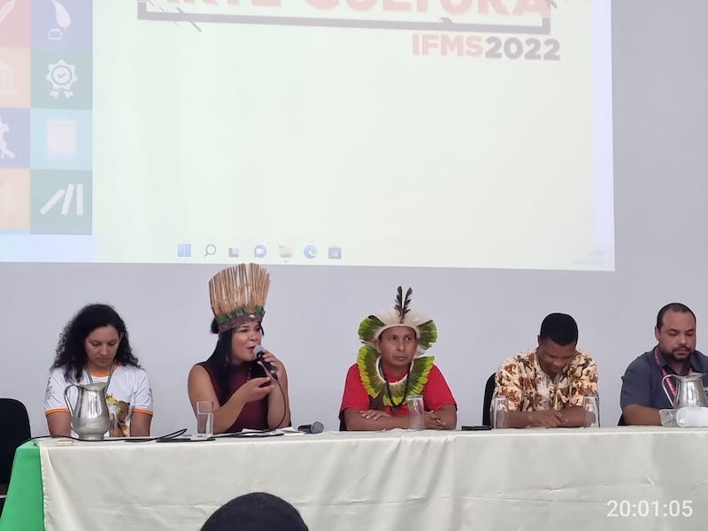 A escritora Glaycielli Nonato ressaltou a necessidade da auto afirmação da originalidade e identidade étnica dos povos indígenas remanescentes dos guatós da região do Pantanal. Ela e os demais componentes da Mesa deixaram evidente que a grande parcela da sociedade, se não têm o sangue dos povos originários nas veias (indigenas e negros), “tem esse sangue em suas mãos pela marca da dizimação ocorrida no período da `peseudo descoberta` e da colonização”.