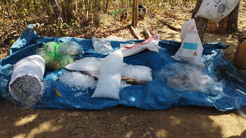 A PMA apreendeu duas redes de pesca, cada uma com 115 metros de comprimento e 1,5 metros de largura, um motor de popa e uma embarcação. O pescador capturado foi preso em flagrante e ambos foram multados em R$ 4.900,00.