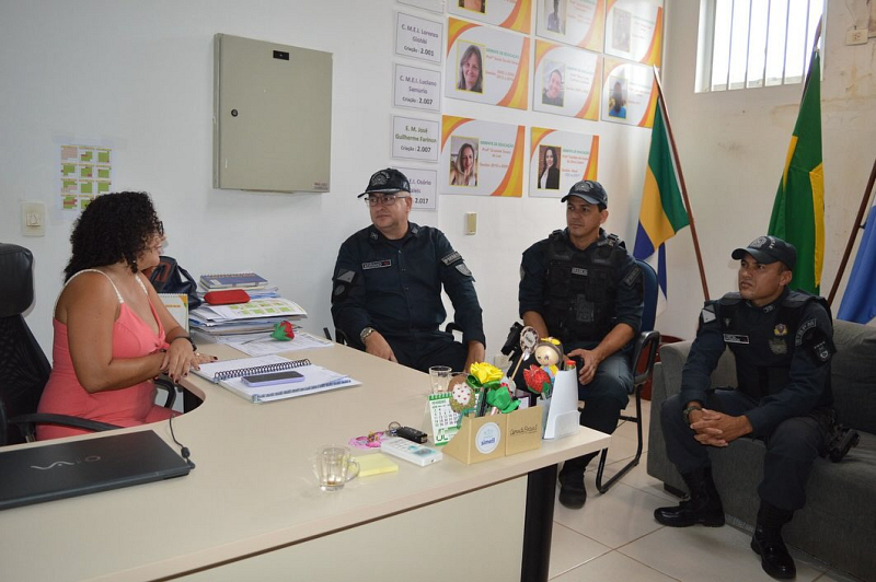 Em uma reunião realizada na última semana, a gerente de Educação de Sonora, Clotilde Castro, recebeu o tenente-coronel Adriano Rodrigues de Oliveira, comandante do 5º Batalhão de Polícia Militar de Mato Grosso do Sul, com o objetivo de viabilizar a implantação do Proerd (Programa de Erradicação às Drogas) no município. Acompanhado pelo capitão Laudileu Brasilino Santana, comandante da Polícia Militar de Sonora, o tenente-coronel Adriano e os instrutores do Proerd, sargentos Robinson e Célio, se reuniram com a gerente para tratar o assunto.