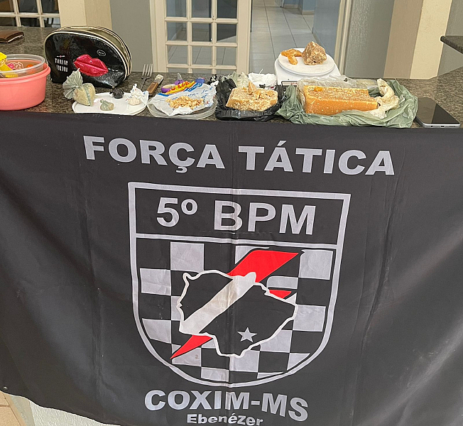 Na residência, os policiais localizaram aproximadamente 1,286 kg de pasta base de cocaína, divididos em sacolas e recipientes, além de materiais usados para preparo e fracionamento, como tesouras, facas, garfo, balanças de precisão, isqueiro e embalagens.