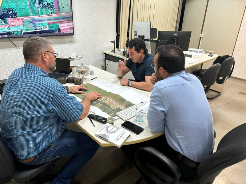 O prefeito de Naviraí, Rodrigo Massuo Sacuno, esteve em Campo Grande na quarta-feira (13) para tratar de melhorias no Aeroporto Municipal Ariosto da Riva. Acompanhado pelo gerente municipal de Obras, Fabiano Costa, o prefeito se reuniu com o superintendente da Coordenadoria de Transportes Aéreos, Hidroviários e Ferroviários da Agesul, Derick Hudson Machado de Souza, para solicitar a instalação do sistema de balizamento noturno no terminal.