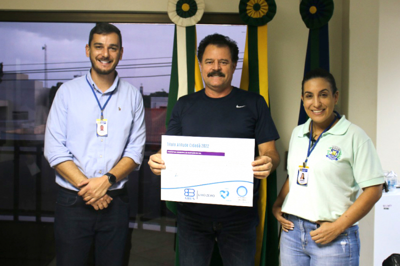 A Prefeitura de Chapadão do Sul recebeu do Instituto Lixo Zero Brasil - organização que integra o movimento Zero Waste International Alliance (ZWIA), o prêmio e certificado de atitude Cidadã 2022, pela gestão eficiente de resíduos sólidos no município, através do projeto Chapadão do Sul cidade sustentável, o evento aconteceu em cerimônia realizada no dia 23 de março, no Centro de Educação Ambiental Leonor Reginato Santini - CEA Polonês, em Campo Grande, e reuniu os principais atores de ações de sustentabilidade e meio ambiente do estado.