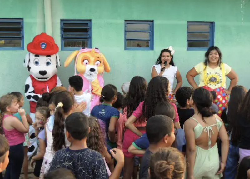 Teve brinquedos infláveis, pintura facial e dinâmicas com palhaços interagindo com as crianças e também distribuição de pipoca, picolé, cachorro-quente e refrigerante.
