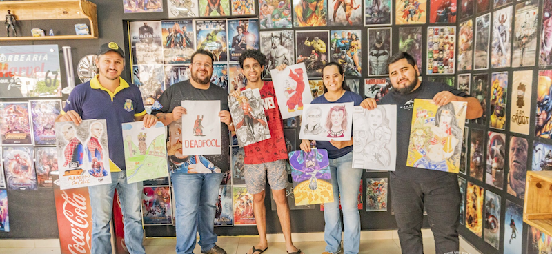 O julgamento dos desenhos inscritos aconteceu na tarde de ontem na Barbearia Marvel, parceria do concurso. Alexandre Marcus Loschi e os professores Adrian Franklin e Vitor Amadeu, foram os jurados responsáveis pelas escolhas, avaliando, junto com a equipe da Secretaria de Cultura, as ilustrações mais criativas e originais.