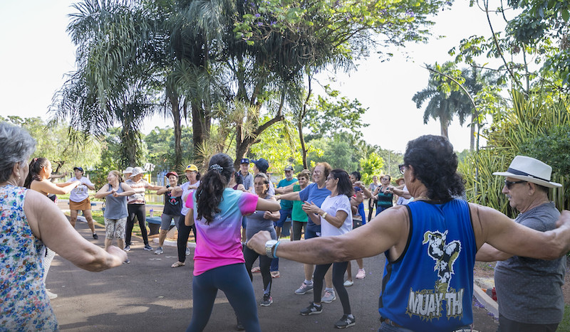 A manhã teve início com uma sessão de alongamento seguida por uma caminhada revigorante. Orientados pelas dedicadas professoras Bruna Galeano e Diuliane Carvalho, os idosos continuaram com uma série de exercícios que culminaram em uma animada sessão de dança, incluindo o empolgante ritbox. Com sorrisos nos rostos e uma atmosfera descontraída, eles movimentaram seus corpos e se divertiram ao final do percurso.