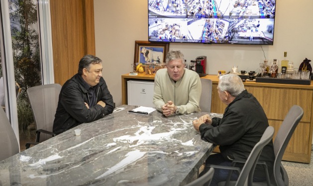 O prefeito de São Gabriel do Oeste, Leocir Montanha, visitou na manhã desta segunda-feira (1º) o parque industrial da Boibras, frigorífico em fase de expansão na cidade. Acompanhado do secretário municipal de Desenvolvimento Econômico, Adão Unirio Rolim, ele se reuniu com o empresário Régis Luis Comarella para tratar de parcerias voltadas à qualificação da mão de obra local e regional.