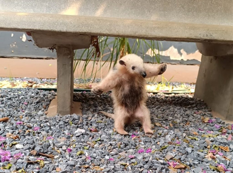 O resgate do filhote ocorreu no domingo (1º) em Jardim, quando Daniele Gutterres, investigadora da 1ª Delegacia de Polícia, encontrou o animal em posição de ataque em frente à delegacia. Daniele, que havia ido alimentar uma cachorra resgatada, chamou o plantonista para ajudar no resgate do tamanduá. “O filhote estava muito assustado e ficou em posição de ataque. Foi tranquilo pegar o bichinho e deixar com a PMA de Jardim”, contou. A Polícia Militar Ambiental (PMA) encaminhou o animal ao Raras, onde está sendo tratado.