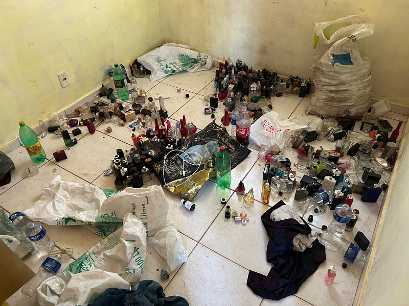 No apartamento, os investigadores apreenderam dezenas de frascos de álcool etílico, essências químicas e centenas de frascos de perfumes vazios. O suspeito confessou que comprava as embalagens em lixões e as preenchia manualmente, sem qualquer tipo de controle ou higiene, antes de vendê-las nas ruas.