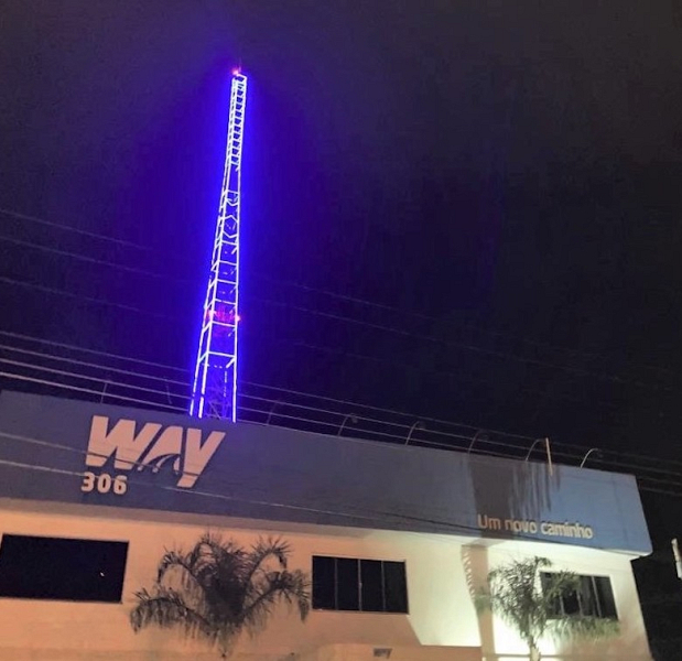 A Way-306 inaugurou na noite desta segunda-feira (5 de dezembro) sua Árvore de Natal, localizada na sede da Concessionária, em frente ao km 117 da MS-306. Com 60 metros de altura, a torre de radiocomunicação ganhou iluminação especial de Natal em LED azul, cor da logomarca da Concessionária.