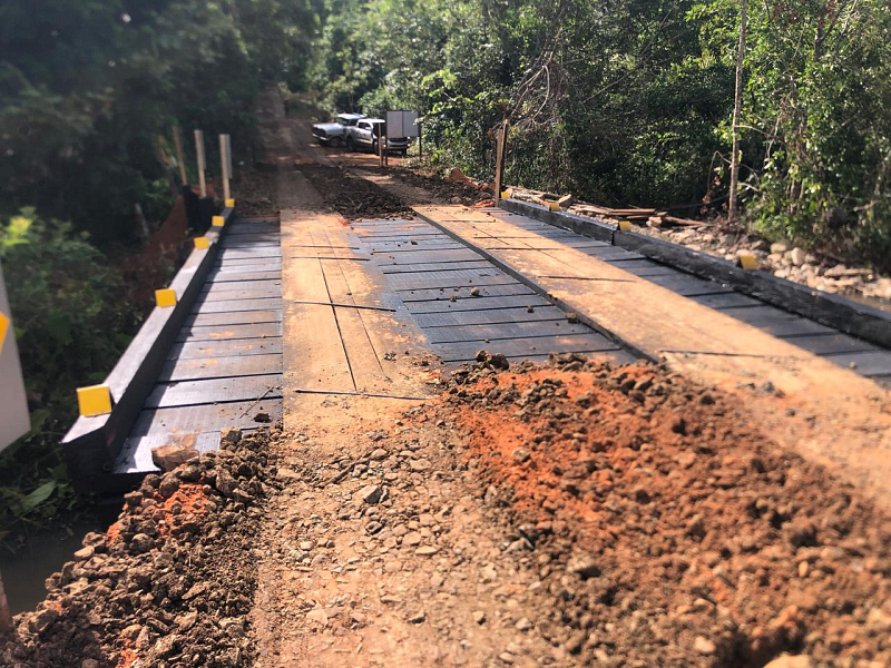 Na busca por melhorias na infraestrutura das áreas rurais, a Prefeitura Municipal de Figueirão realizou mais uma entrega: uma nova ponte de madeira sobre o Córrego Taboca, na região do Bonito. A obra, realizada pela Secretaria Municipal de Infraestrutura e Serviços Públicos, consiste em uma ponte de vigamento simples, com extensão de 8 metros.