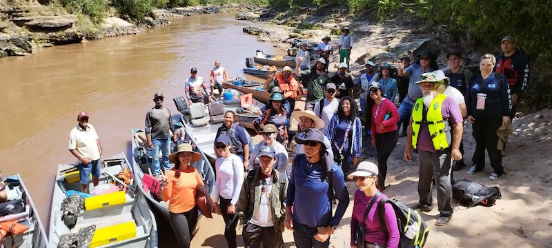 No total, um grupo de 37 pessoas viajaram, com experientes guias fluviais, por meio da South Pantanal Tours, que realiza expedições turísticas na região há mais de 20 anos. Uma equipe da TV Educativa, professores do IFMS Coxim e um observador de uma operadora de turismo internacional também acompanharam a expedição.