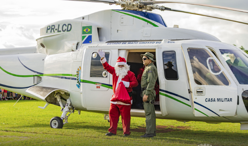 A aeronave que transportou a figura ilustre do Natal veio de Campo Grande e foi cedida pelo Governo do Estado de Mato Grosso do Sul, por meio da Casa Militar. “Nós agradecemos ao governador Reinaldo Azambuja e ao chefe da Casa Militar, coronel Nelson Antônio da Silva, por contribuir para que esse evento fosse único e memorável para todos os cidadãos são-gabrielenses”, pontuou o prefeito.