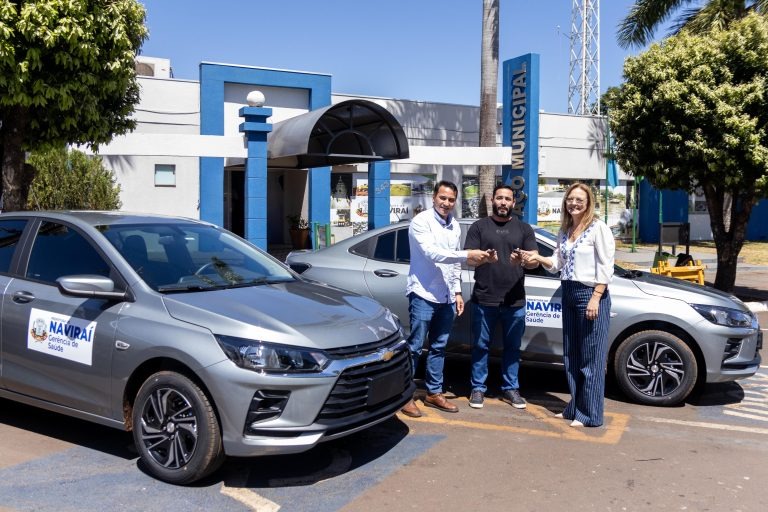 A Prefeitura de Naviraí reforçou nesta quarta-feira (10) a frota da saúde pública com a entrega de dois novos veículos Chevrolet Onix, adquiridos com recursos próprios. O investimento ultrapassa R$ 200 mil e busca melhorar a estrutura de transporte da Gerência Municipal de Saúde.