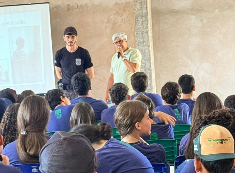 A Delegacia de Polícia de Camapuã realizou, na manhã desta segunda-feira (10), uma palestra na Escola Estadual Miguel Sutil com o tema “Bullying no ambiente escolar”. A ação buscou conscientizar alunos sobre os impactos da violência psicológica e de comportamentos discriminatórios no convívio escolar.