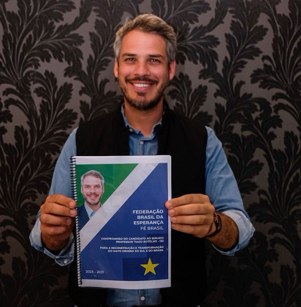 Filho de Mato Grosso do Sul, Tiago Botelho é advogado, professor universitário e um dos mais novos candidatos ao Senado do Brasil pela federação “Brasil da Esperança – Fé Brasil” (PT/ PCdoB/ PV). Seu discurso plural e inclusivo está baseado em anos de dedicação à pesquisa acadêmica e ao ensino universitário para estudantes de perfis e origens diversas que representam a sociedade. Botelho está preparado para representar o nosso estado e cumprir o papel de senador com amor, responsabilidade e compromisso com todos os sul-mato-grossenses.