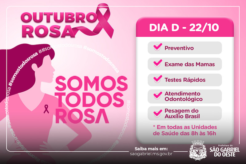 Neste sábado (22 de outubro), acontece em todas as unidades de saúde de São Gabriel do Gabriel do Oeste mais uma edição da Campanha de Preventivo do Câncer do Colo do Útero.